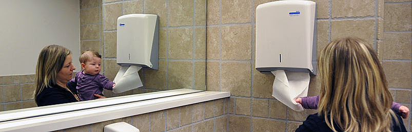 Der Falthandtuchspender von BHS kann zu jeder Zeit, auch bevor er ganz leer ist, aufgefüllt werden.