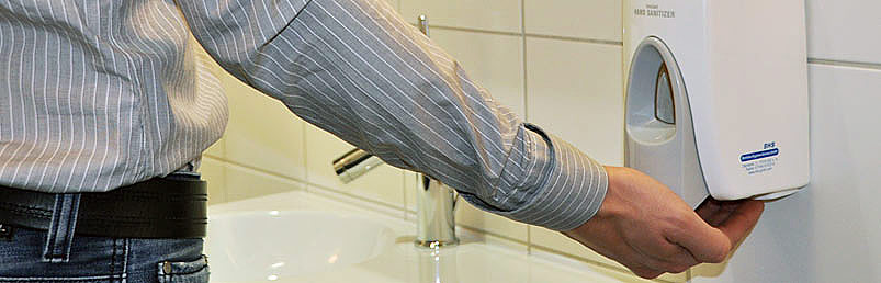 Unser Tipp: Handdesinfektionsspender sind nicht an Sanitäre Anlagen gebunden.
